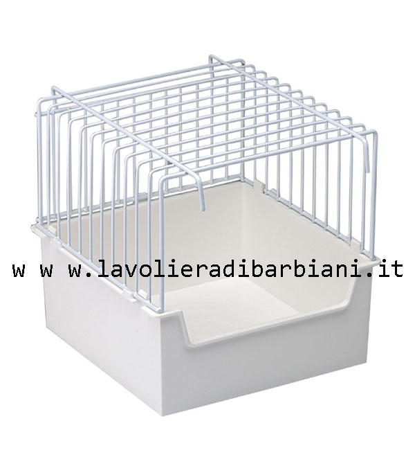 Bagnetto da esterno con rete metallica che si monta sulla gabbia dall’infuori sfruttando i fori della gabbia o voliera, col bacino pieno d’acqua può essere sfruttato dai vostri volatili di piccola taglia per la loro pulizia ed il benessere assolutamente vitale nel loro habitat, inoltre semplice e comodo da montare e pulire.