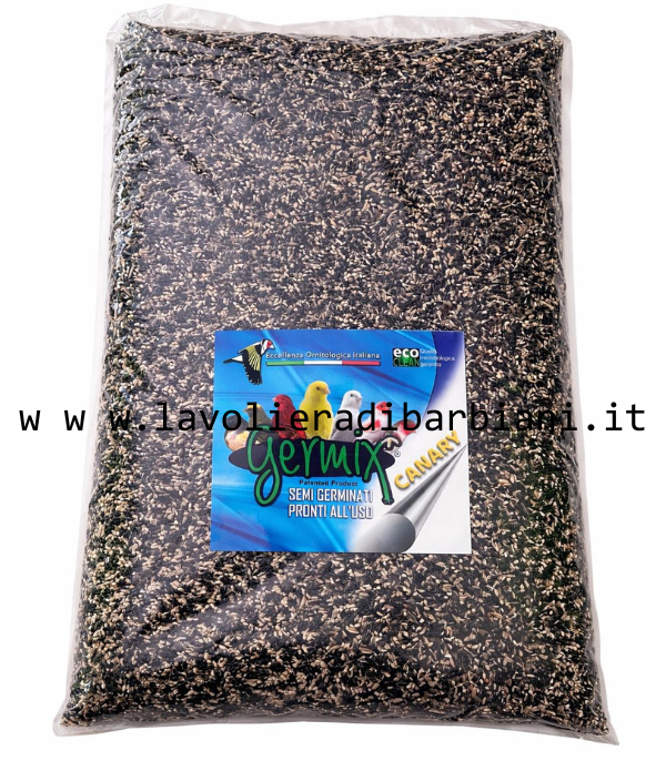 Miscela di semi germinati selezionati per i canarini con formula “Evolution dry”. Tutti i semi Germix Canary presenti non danno doratura e non colorano. Nella nuova formula con avena germix il contenuto di vitamina B1 e vitamina B2 e importanti minerali (magnesio, zinco, calcio e ferro) è aumentanto notevolmente.