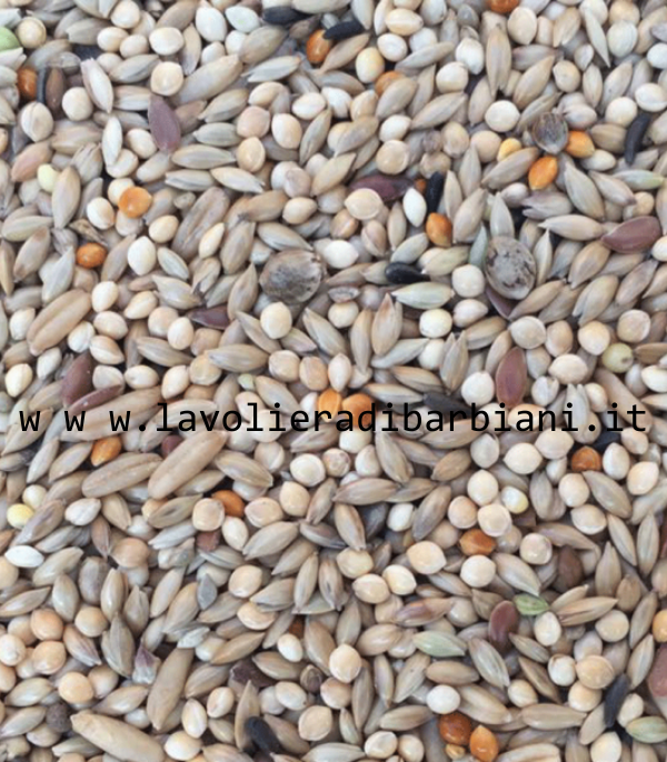 COMPOSIZIONE: Scagliola, miglio bianco, miglio giapponese, avena decorticata, miglio rosso, niger, seme di lino, canapuccia.
